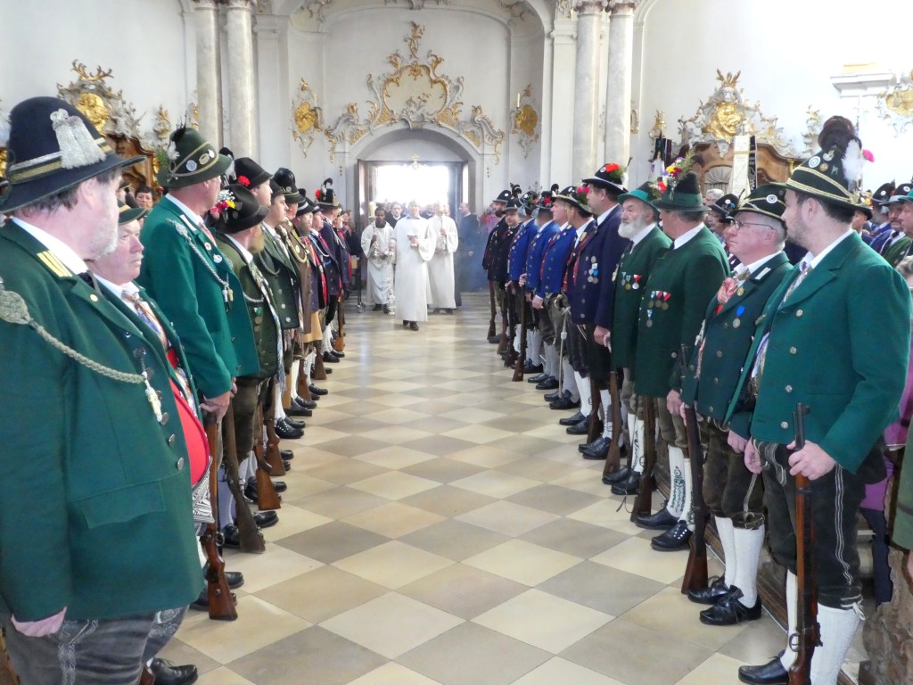 mit Ehrensalut für Ehrenhauptmann Peppi Albl, es wird eine vom Jubilar gestiftete Geburtstagsscheibe ausgeschossen, anschließend lädt er alle Schützen und Marketenderinnen ganz herzlich zum Essen ein.